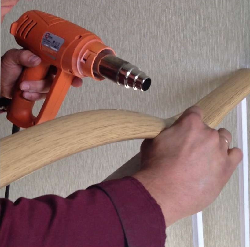 Якщо фена немає, можна скористатися гарячою водою. Поручень потрібно занурити у ємність з водою температурою 50-60 ºС на кілька хвилин, щоб зробити його пластичним. Потім його просто надягають на металеву полосу.